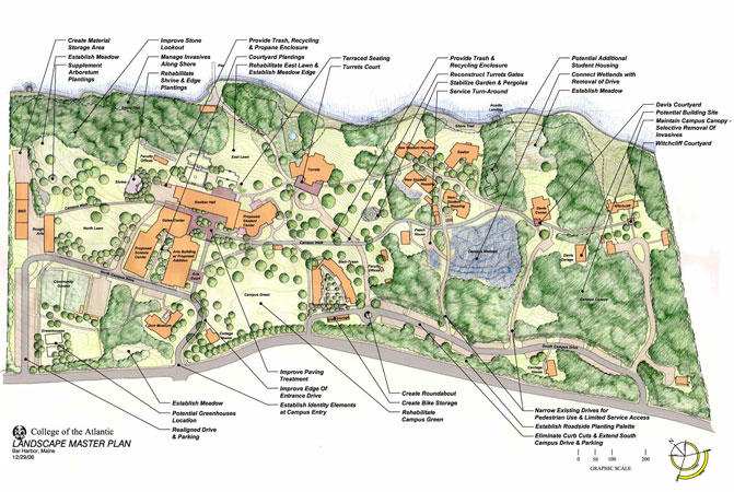 Coplon Associates prepared a landscape master plan to detail recommendations for site improvements and landscape management for the COA campus. Through reuse of existing sites, rehabilitation of disturbed areas and a comprehensive strategy for managing campus resources, the plan reflects the college’s commitment to land stewardship and long term sustainability in the built landscape. In 2007, CA designed additions to the south campus circulation and parking, extending the plan CA designed in 1992.