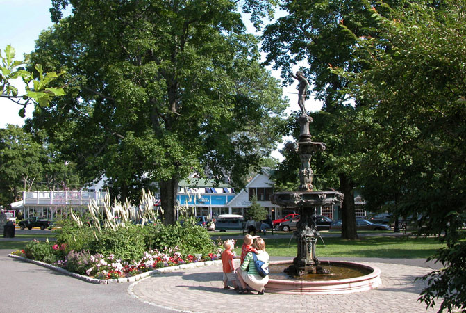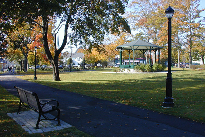 Over the course of six years, Coplon Associates assisted the Bar Harbor Village Improvement Association and T own of Bar Harbor with planning, design, and fund raising for renovations to the historic village green. The design included improvements to all the features of the park including pathways, lighting, plantings, monuments, and the fountains. Streetscape improvements included a new granite seating wall along Main St. and the central staging area for the Island Explorer, a seasonal shuttle bus serving Mt. Desert Island. The successful renovation of the Green resulted from a unique public-private partnership that included the Town of Bar Harbor, the Bar Harbor Village Improvement Association Friends of Acadia and the Maine Department of Transportation. The project received a 2001 Merit Award from the Boston Society of Landscape Architects.
