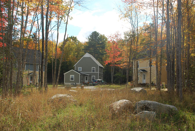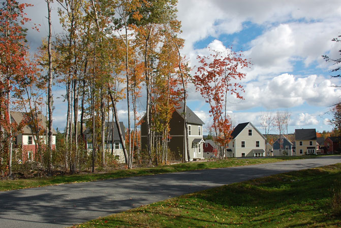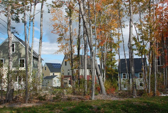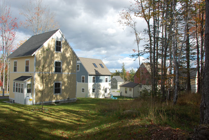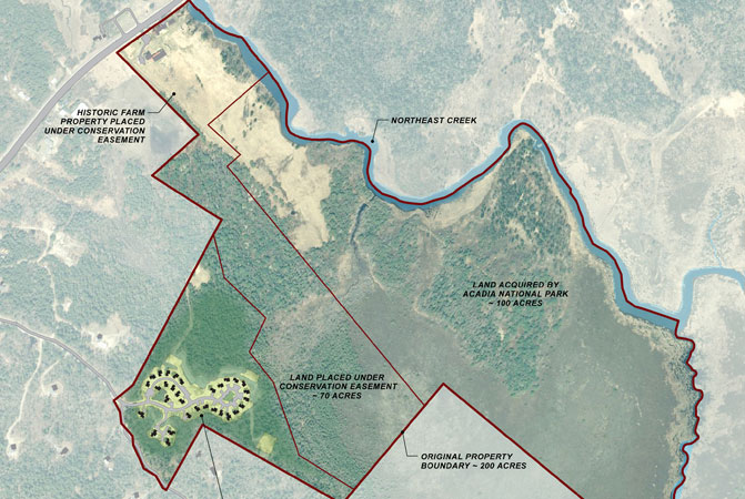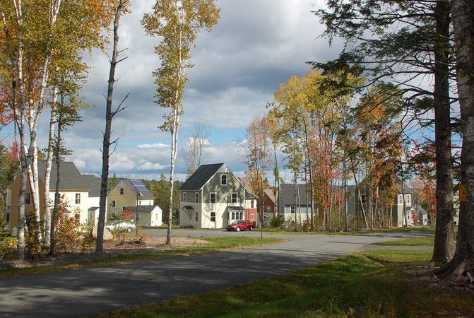 Coplon Associates provided conceptualization, master planning, site design and permitting services for a new 31-home affordable neighborhood in Bar Harbor. Located in proximity to the environmentally significant Northeast Creek, the overall project included the permanent protection of over 100 acres of visually and ecologically sensitive property. Sponsored by the Bar Harbor Housing Authority, the project was the first large-scale project designed as a Planned Unit Development in Bar Harbor. The neighborhood design clustered houses on small lots limiting the development footprint to approximately 5.5 acres or 8% of the property area. The remaining 92% (61 acres) was dedicated as open space. The neighborhood contains two primary residential clusters, one that enables residents to park close to their homes in shared driveway arrangements, the second featuring “walk-to” homes in which the houses are located along a pedestrian street/service drive with parking at each end. Through the design of the buildings, small development footprint and innovative storm water management, the project objective was to match green design/construction standards with affordable, workforce housing.